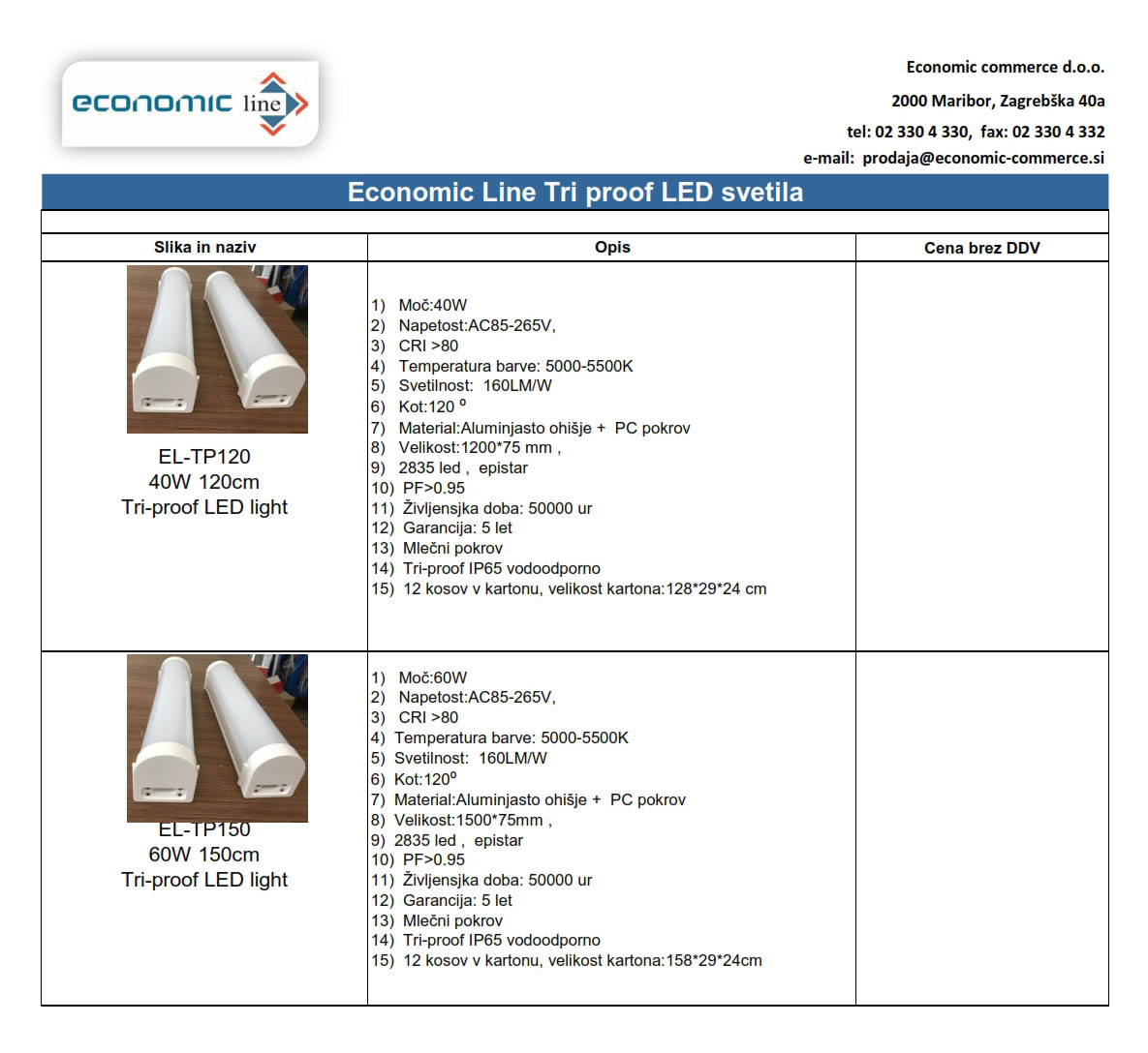 Tri-Prof ali vodotesna linijska svetila z zaščito IP 65 proti vlagi in se oporabljajo v vlažnih prostorih kot so garaže, proizvodne linije….